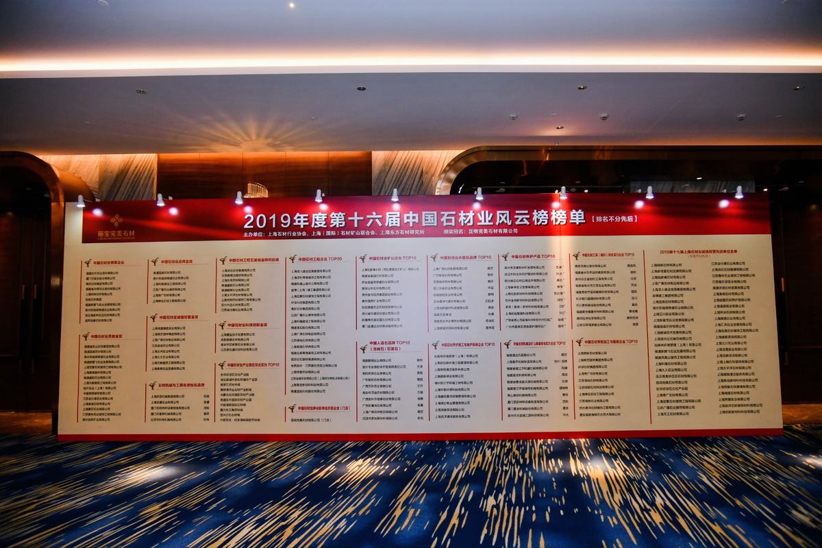 | 由中國石材媒體聯(lián)盟、全國石材信息網(wǎng)、上海石材行業(yè)協(xié)會、上海(國際)石材礦山聯(lián)合會、上海東方石材研究所等聯(lián)合發(fā)起主辦,上海明珠石材有限公司、南通國威石材有限公司、泉州東繼順錦盛石業(yè)有限公司、福建鳳凰山裝飾工程有限公司協(xié)辦的2019年度中國石材業(yè)(第十六屆)風(fēng)云榜頒獎晚會于2019年12月28日晚上在虹橋綠地鉑瑞酒店隆重舉行,約500位嘉賓出席并見證了這次石材行業(yè)的盛會。